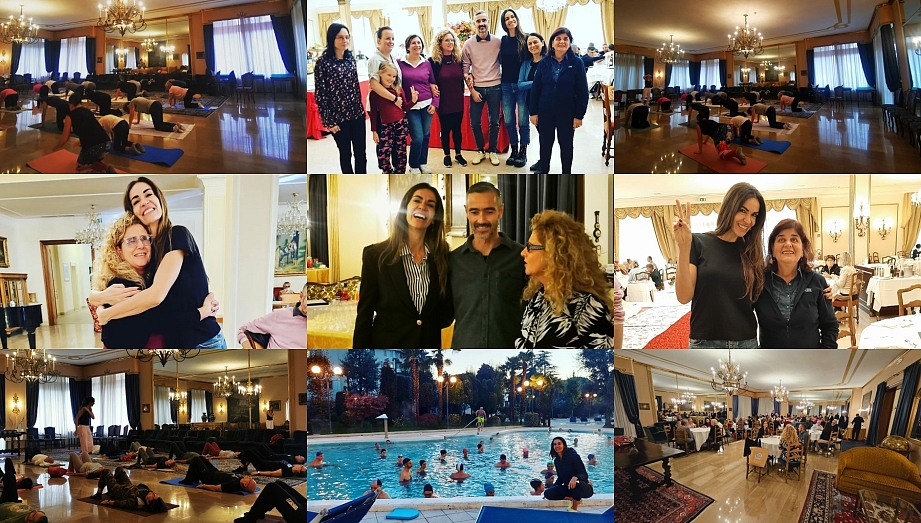 Nella splendida cornice dei Colli Euganei l'hotel ci ha messo a disposizione un'ampia ed elegante sala dove abbiamo svolto tutte le nostre lezioni di pilates, comprese quelle nella piscina con acqua termale.