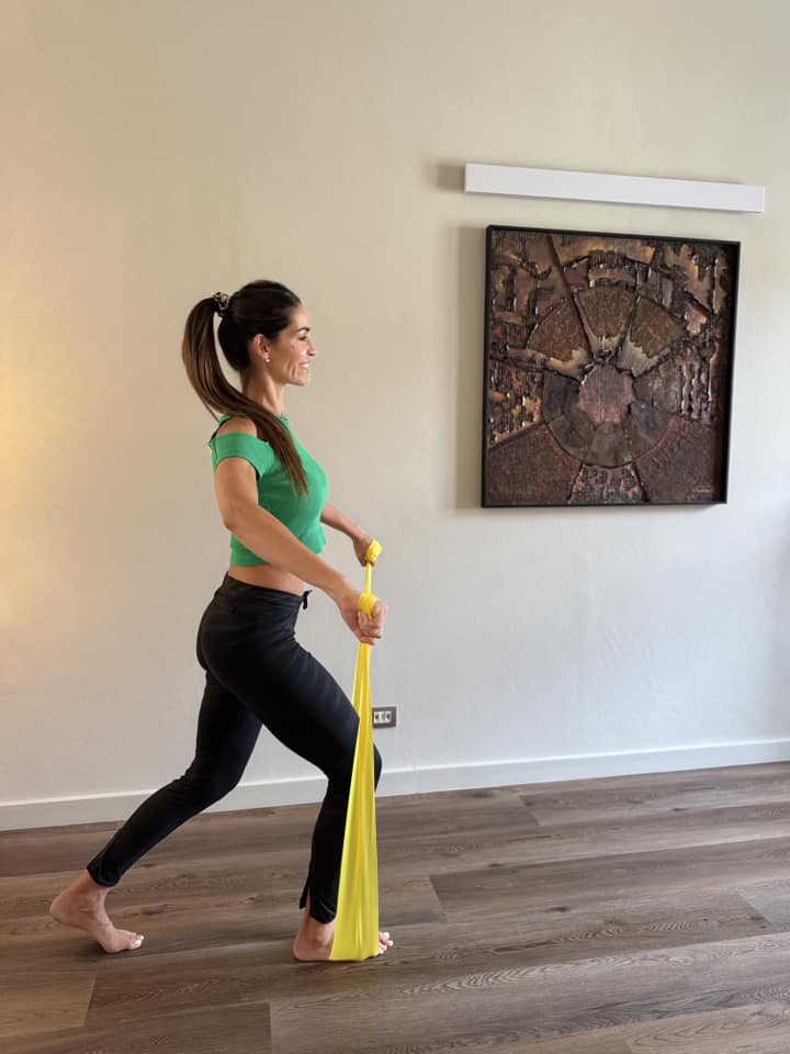 L’utilizzo di una benda elastica durante questi esercizi implementa il lavoro degli arti superiori, stimolando anche la muscolatura del dorso, delle spalle e delle braccia!